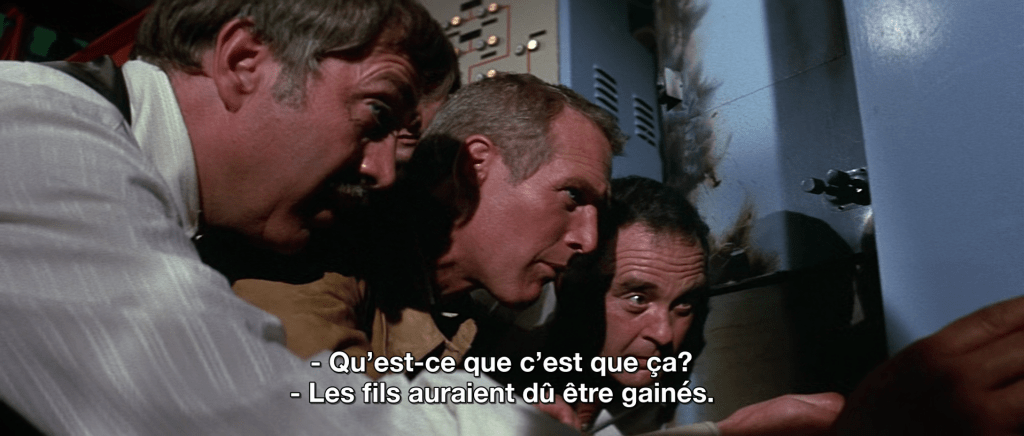L’intérêt principal de ce genre de film réside dans la question de savoir qui des vedettes survivra à la catastrophe. Ainsi le spectateur se demande, angoissé : y aura t-il une fin heureuse pour le gentil couple Fred Astaire et Jennifer Jones, qui se sont rencontrés juste avant le désastre ? Est-ce que Faye Dunaway, l’éblouissante fiancée de l’architecte, survivra ? Est-ce que l’ignoble salaud Richard Chamberlain va s’en sortir ou plutôt finir en rôti de porc ? Est-ce que Steve McQueen va arriver à faire sauter les verrous des bassins d’eau situés sur le toit pour éteindre les flammes ? Est-ce que Paul Newman va abandonner son boulot d’architecte pour élever des chèvres en Ardèche ?