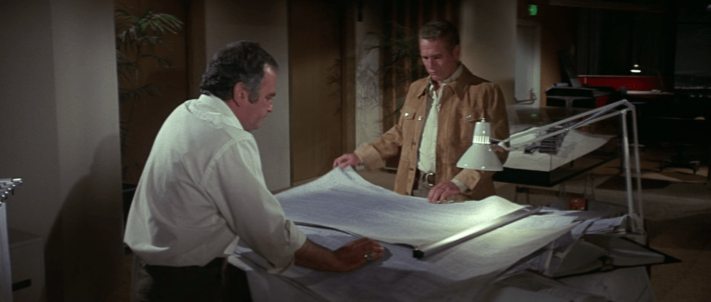 L’architecte, joué avec aplomb par Paul Newman, incarne succès, charisme et génie. C’est un surhomme dans toute sa splendeur et ses constructions spectaculaires défient les lois de l’univers. Pourtant, à peine arrivé dans sa nouvelle tour, il exprime à Duncan, son promoteur, qu’il souhaite décrocher et vivre une vie tranquille loin des villes (curieuse idée du scénariste, dont la motivation n’est nullement justifiée et n’aboutit pas par la suite).