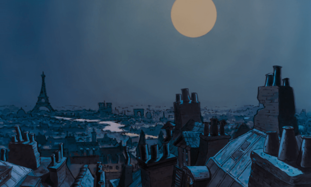 En 1970, « Les Aristochats » a aussi comme toile de fond la ville de Paris, et inévitablement, le film montre la tour Eiffel pendant le générique du début.