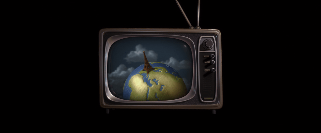 Pourtant, la première apparition de la tour Eiffel se singularise grâce à une idée astucieuse : le monument est posé de manière surdimensionnée sur un globe terrestre lors d’une émission de télévision, affirmant que les meilleurs chefs cuisiniers se trouvent à Paris.