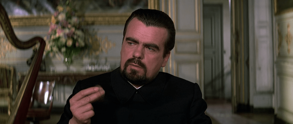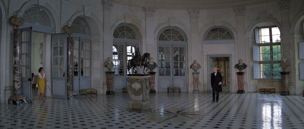 … dans les somptueux intérieurs du château – tournés dans un autre château (!) : le Château de Guermantes à une trentaine de kilomètres à l’Ouest de Paris (fermé aux visiteurs).