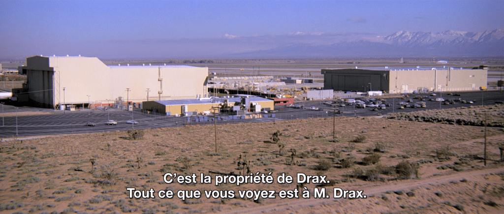 … en réalité le Rockwell International Aircraft Plant, à Palmdale, dans la vallée d’Antelope, bien situé en Californie, là où a été développé le véritable Space Shuttle, qui a servi de modèle pour le Moonraker.