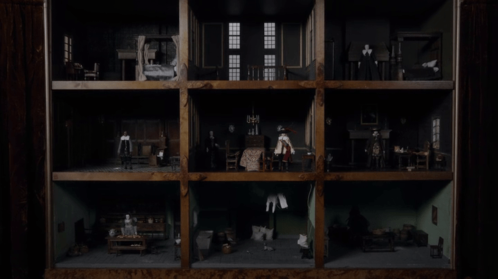 Chaque compartiment est la réplique d’une pièce de la maison dans laquelle habite la jeune épouse, avec le même mobilier en miniature. Le jeune femme sera ensuite amenée à découvrir, à travers ce jouet, les secrets que cache la maison et qui pèsent sur la famille. La maison de poupée acquiert alors une connotation mystérieuse et énigmatique, en plus d’être le double de la maison qu’elle représente.