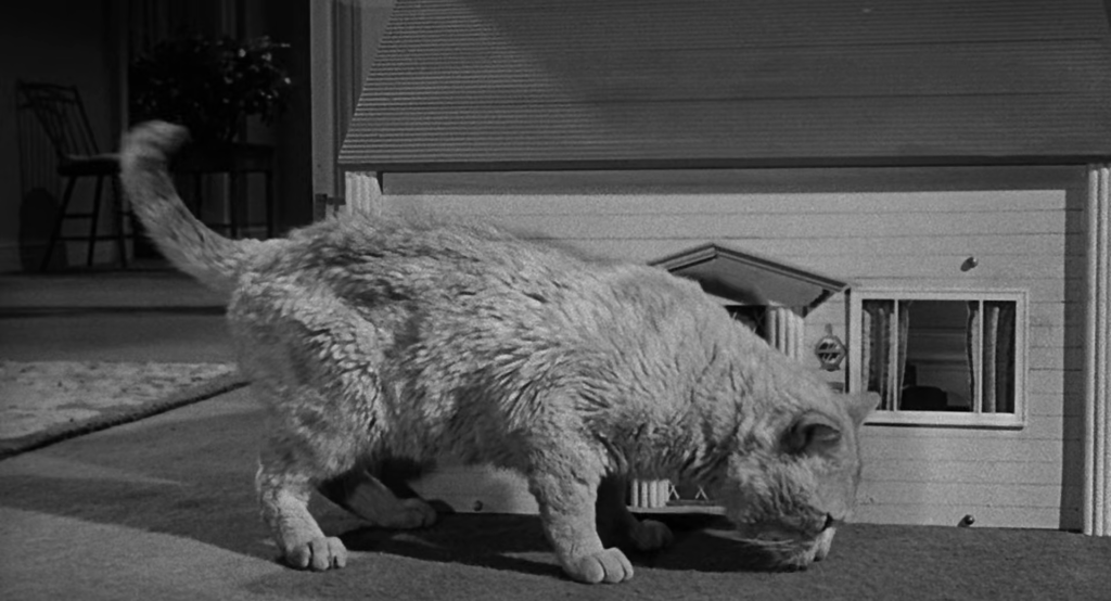 Les choses se compliquent quand la femme sort faire des courses, et ne réalise pas que le chat est entré dans la maison !