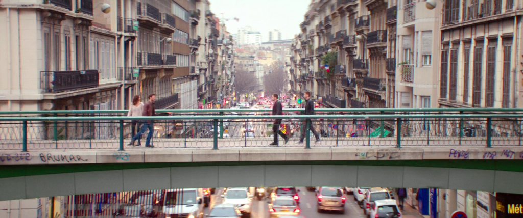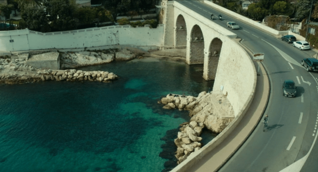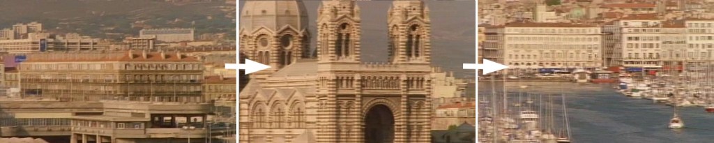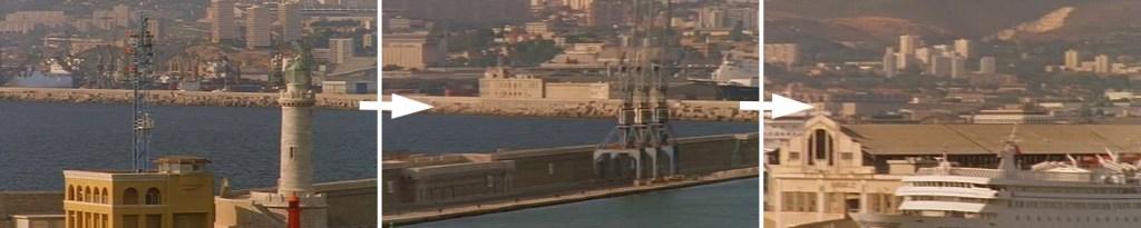 Quoi qu’il en soit, on peut noter la persistance des cadrages sur les voies de transport pour introduire Marseille, ville-port de transit par excellence : autoroute, corniche, port ancien ou moderne, gare ou moins souvent aéroport : les protagonistes semblent ne pas vouloir rester dans cette ville et ne font que passer.