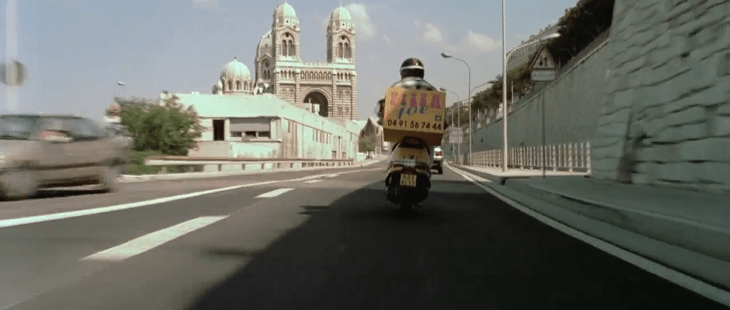 Le livreur de pizza Daniel Morales (Samy Naceri) n’a pas encore son taxi, mais il passe déjà ses journées à arpenter les rues de la ville, à fond les ballons. Il double ainsi quelques monuments connus, tel celui de la cathédrale de La Major à proximité du Vieux-Port (dont les urbanistes ont pris soin de donner l’impression qu’on fonce directement dans la cathédrale).