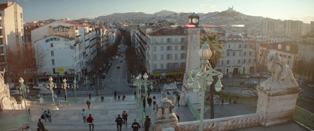 2017 : Une vue splendide, sur le boulevard d’Athènes depuis le haut du grand escalier de la gare Saint-Charles ouvre très classiquement le dispensable « Overdrive », film d’action qui tente de combiner l’ambiance des films de braquage des années 60 et 70 (comme « The Italien job » ou « Topkapi ») et le dernier (ou avant-dernier) « Fast and Furious ».