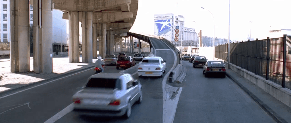 1998 : « Taxi », la franchise à très grand succès produite par Luc Besson, introduit la ville de Marseille depuis la route. C’est un parti pris assez évident puisque les courses poursuites dans les rues de Marseille sont l’argument principal du film.
