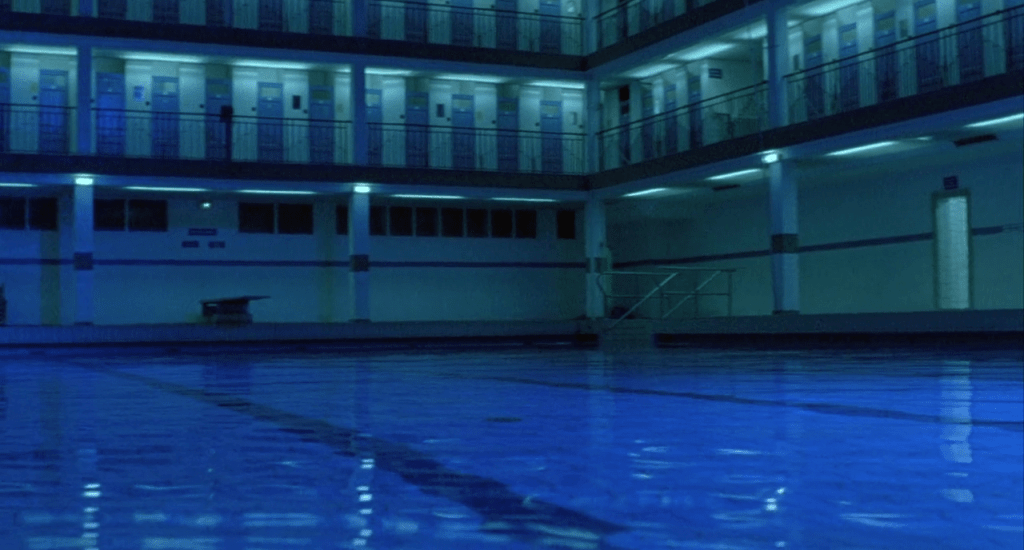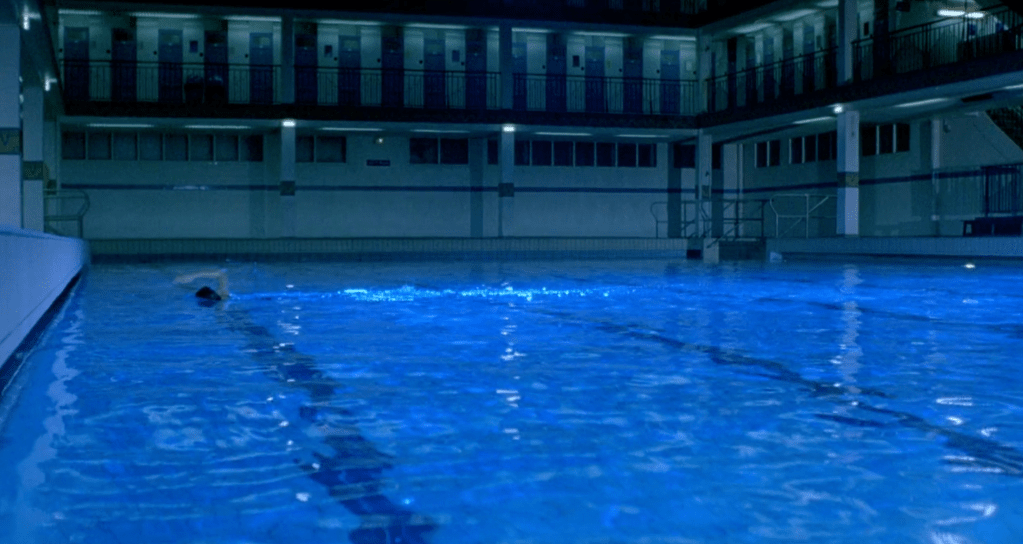 Construite dans les années 1930 par l’architecte Lucien Pollet dans un style « Art Déco », ce bâtiment devient une métaphore puissante pour exprimer les états d’âme de Julie. Elle s’y rend régulièrement le soir, dans une ambiance bleutée et un bassin mystérieusement vide de tout occupant, s’évertuant à nager dans la largeur du bassin, franchissant les lignes tracées au lieu de les suivre. Images intenses qui témoignent de sa force à s’affranchir des codes.