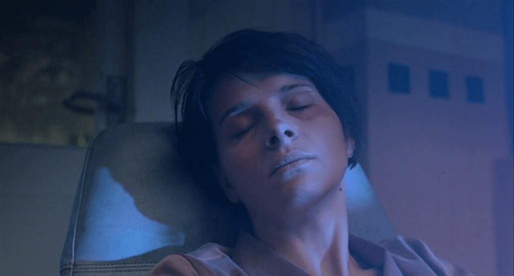 On retrouve la même mise à distance lorsque Julie, qui souhaite tout oublier, visite la maison de retraite où vit sa mère (Emmanuelle Riva – touchante). Atteinte de démence, elle ne reconnaît plus sa fille et la confond avec sa propre sœur.