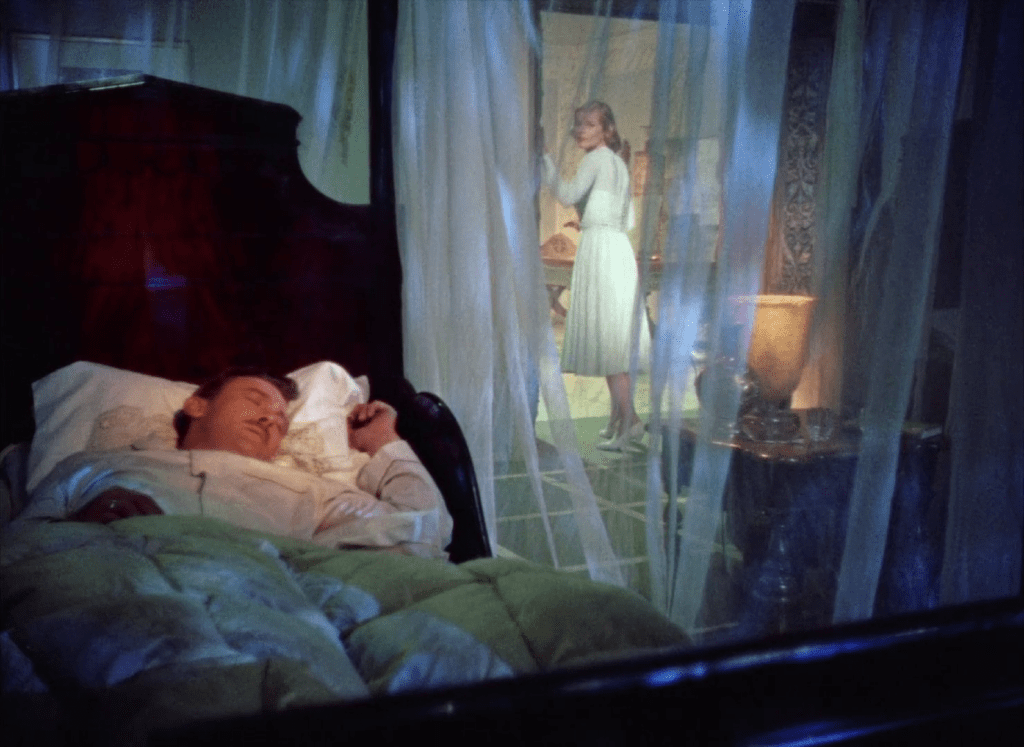 Une même approche ironique se manifeste dans l’utilisation de la couleur et des éclairages. Lang illumine de manière irréelle des personnages secondaires avec un halo pour les mettre en avant sans motif apparent. Les couleurs chatoyantes et arbitraires participent à l’ambiance féerique, étonnamment proche des tableaux pop qui vont rendre célèbre l’italien Mario Bava quelques années plus tard.