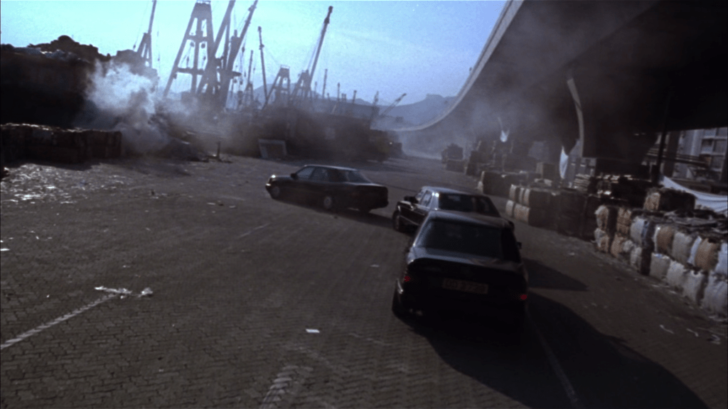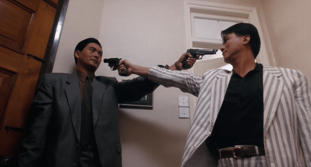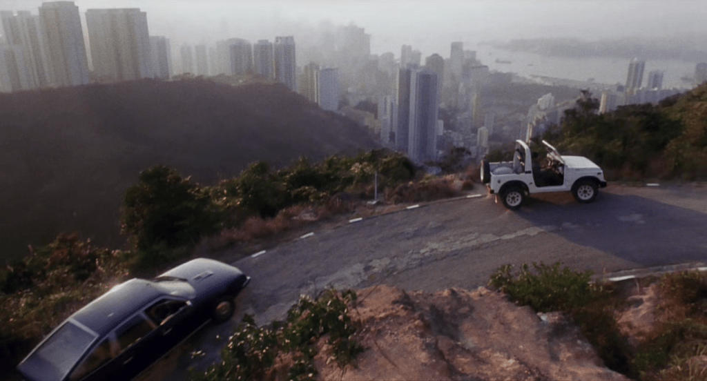 Dans « The Killer », John Woo exploite ce contraste dans une scène clé entre Chow Yun-Fat et Kenneth Tsang, sur l’une des nombreuses routes qui serpentent sur les hauteurs de la ville.