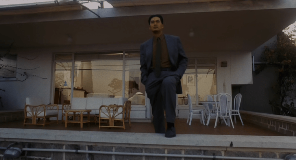 On retrouve le dispositif de la villa clinquante comme représentation de l’aboutissement social et économique dans « The Killer ». Montrée d’abord comme un havre de paix tranquille, elle devient par la suite le lieu d’un carnage sanglant.