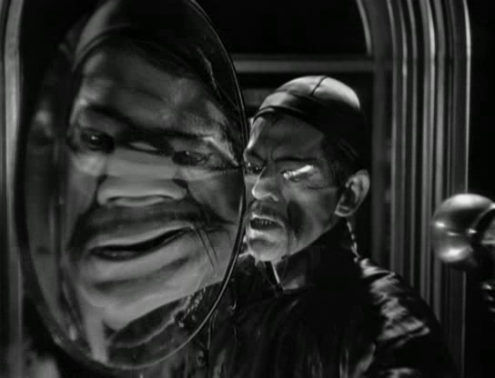 « Le Masque d’Or » de Charles Brabin (1932) utilise le même procédé d’images déformantes pour effrayer le spectateur et accentuer le côté diabolique du méchant Dr Fu Manchu (Boris Karloff).