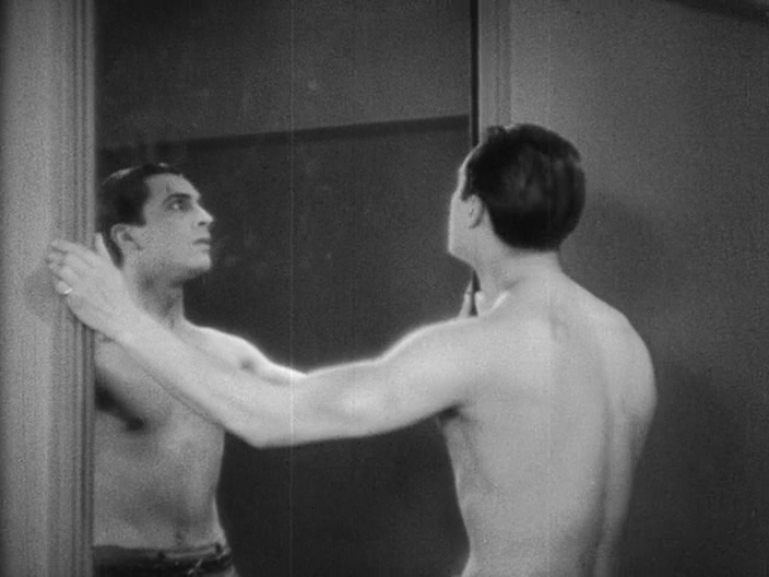 « Le Montreur d’ombres » / « Schatten, eine nächtliche Halluzination » de Arthur Robison (1923) pousse l’utilisation du miroir plus loin encore puisqu’un mari jaloux découvre l’adultère de sa femme grâce à un reflet dans le miroir. Après avoir tué son épouse, il s’acharne désespérément contre l’objet pour le briser comme il a brisé sa propre vie.