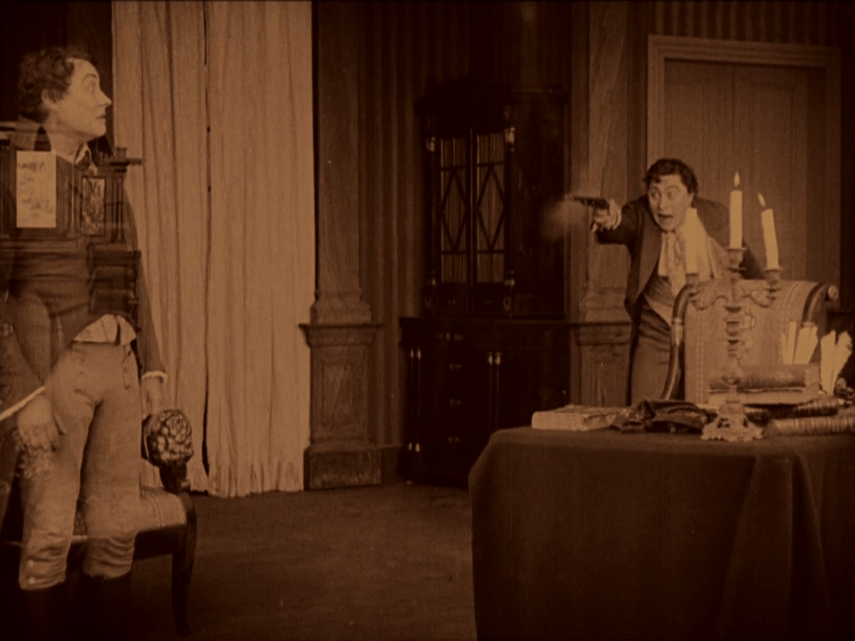 Persécuté par son double, Balduin perd amour, amis, et même la raison. A la fin, il tire sur son « autre soi » de désespoir mais se tue ainsi lui-même – au grand plaisir du perfide Scapinelli.