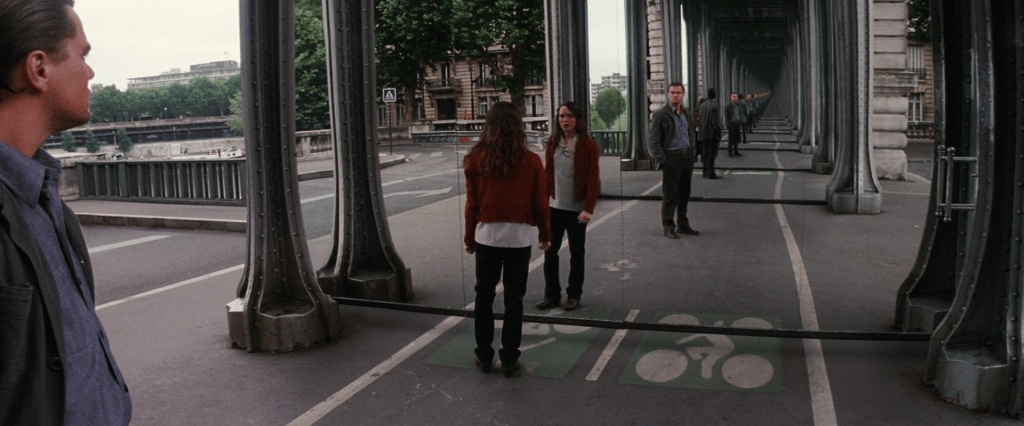 Un miroir qui ne déforme pas les personnages, mais leur environnement, est le double miroir qu’agite Ariane (Ellen/Elliot Page), l’architecte des rêves dans « Inception » de Christopher Nolan (2010), pour modifier le pont Bir Hakeim à Paris.