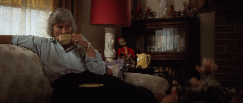 Si l’une des caractéristiques de la maison de lotissement est sa grande baie-vitrée ouverte sur le jardin, elle est rapidement détrônée par le téléviseur comme fenêtre sur le monde, permettant d’être informé ou diverti sur ce qui se passe dehors, sans même sortir de chez soi. « Blue Velvet » montre à plusieurs reprises la mère et la tante de Jeffrey rivées devant la télé. Pour elles, il vaut mieux rester à la maison, où l’aventure et le crime arrivent de manière sécurisée, filtrés par le poste de télé5. Or le jeune et l’intrépide Jeffrey porte en lui le désir de sortir et d’explorer le côté obscur de la ville.