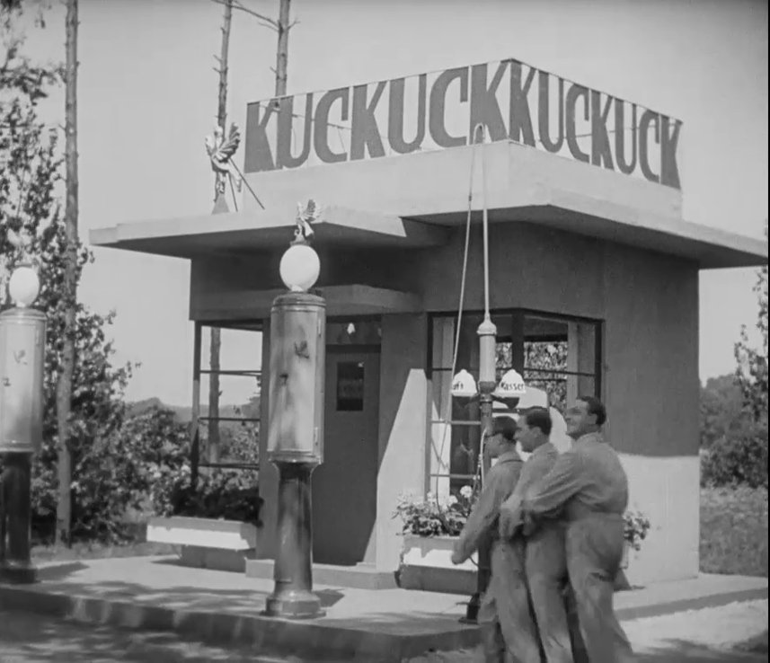 On trouve également un autre mini-pavillon de station-service hypermoderne dans « Die Drei von der Tankstelle » / « Le Chemin du paradis » (1930), tourné par Wilhelm Thiele, dans une version avec des acteurs allemands, et en parallèle, dans une version avec des acteurs français1.