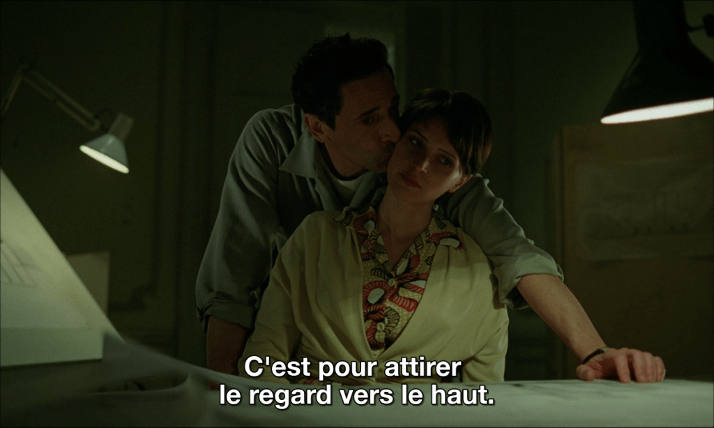Le film s’attarde avec justesse sur l’importance de la bonne proportion et du matériau juste dans une œuvre architecturale – les clés de la réussite d’un bâtiment. Et sur la nécessité de défendre cette qualité, quitte à passer pour un despote. Corbet partage, dans sa manière de produire ses propres films, les ambitions de son héros. S’il tourne en VistaVision, c’est aussi pour faire revivre et pour rendre hommage à une forme de matérialité et de grain qui ont été perdus, avec l’usage du numérique.
