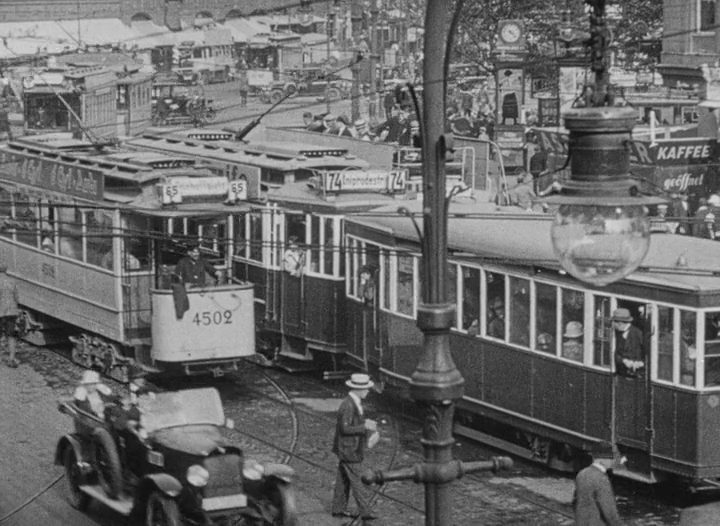 « Berlin – Sinfonie der Großstadt », film muet allemand, constitue un exemple emblématique du cinéma documentaire urbain1. Walter Ruttmann, accompagné de Karl Freund2, qui s’occupe avec lui du scénario, vient capter le quotidien de Berlin dans les années vingt à travers un montage novateur et rythmique, structuré comme une composition musicale. En orchestrant les dynamiques de la ville, il crée une véritable symphonie cinématographique à partir des différentes énergies et ambiances changeantes au fil des heures de la journée.