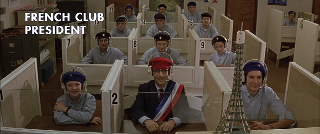 Dès son deuxième film, Rushmore, l’engouement pour la France est déjà manifeste dans le personnage de Max Fischer (Jason Schwartzman), élève excentrique mais médiocre d’une école privée prestigieuse, qui compense ses mauvaises notes en multipliant ses engagements dans des activités annexes proposées par l’établissement. Parmi elles, le club de français, qu’il préside affublé d’un béret et d’une écharpe tricolore, avec, au premier plan, une maquette de la tour Eiffel ! Il est également fan du commandant Cousteau2 et s’efforce de monter un projet pour construire un aquarium sur le campus.