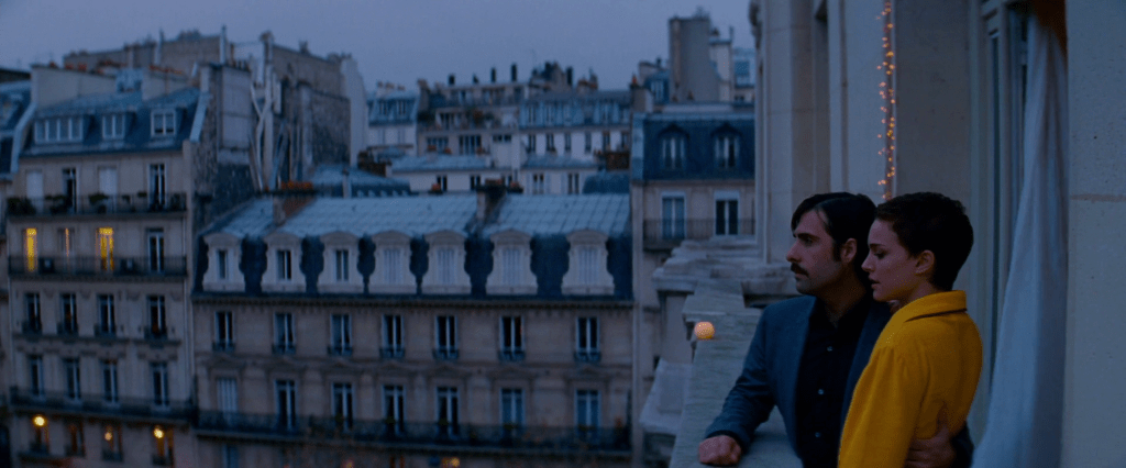 Les diverses saynètes montrent surtout des problèmes de couples filmés sur le principe du « Kammerspiel »4 , avec les protagonistes enfermés dans des appartements parisiens – un dispositif qu’Anderson reprend pour son court-métrage afin de montrer l’incompatibilité entre les personnages de Natalie Portman et Jason Schwartzman (ci-dessous à droite – à gauche une image du segment Rue Saint-Denis de Jean-Daniel Pollet avec Claude Melki et Micheline Dax).