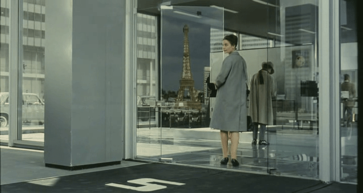 C’est un hommage à peine voilé au film Playtime (1967) de Jacques Tati, qui s’amuse à montrer un Paris ultramoderne et transparent, où les monuments n’apparaissent que sous forme de reflets dans les vitres.