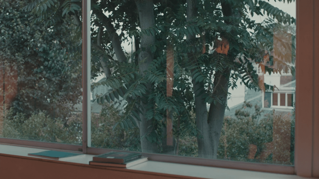 « Les baies vitrées constituent une part importante de la conception, et j’ai toujours été frappée – non seulement par cette maison mais aussi par d’autres espaces modernes que j’ai connus – par le fait que, lorsque l’on regarde dehors, on est souvent en réalité en train de regarder dedans à cause des reflets. J’ai trouvé que cette qualité spectrale était vraiment intéressante pour le film, puisqu’il s’agit de deux personnes qui ont vécu dans le même espace pendant toute la durée de leur relation. » (Joanna Hogg, entretien dans Cinéma-Scope)
