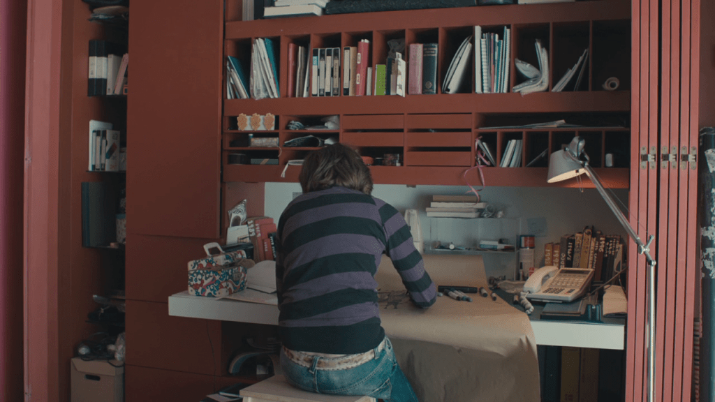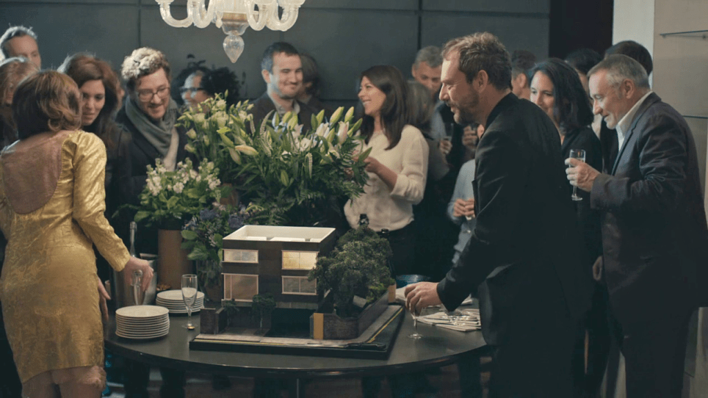 Donner une telle importance à une maison épurée et théâtralisée, habitée par deux artistes, se traduit par l’étrange impression d’assister à une combinaison entre Mon Oncle de Jacques Tati (sans les gags) et Scènes de la vie conjugale de Ingmar Bergman (sans les disputes).
