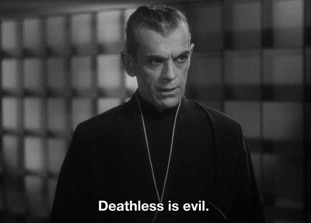 C’est là que Poelzig conserve ses anciennes amours défuntes, embaumées et suspendues dans des cercueils de verre — des avatars modernes de Blanche-Neige qui ne se réveilleront jamais.