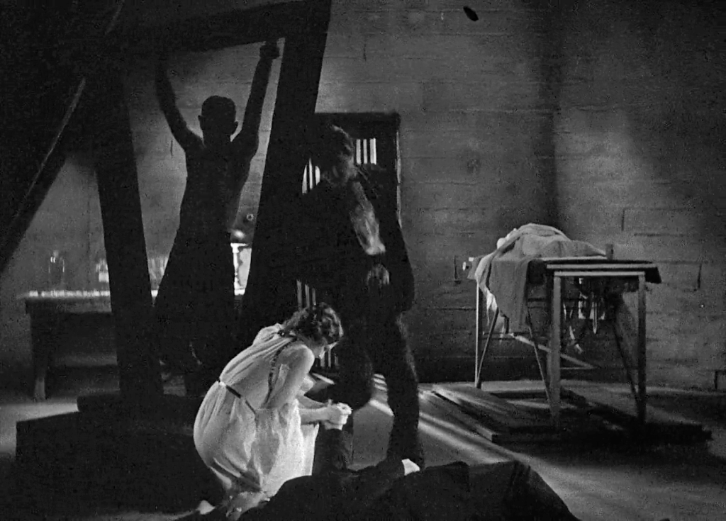 Ulmer connaît ses classiques et n’hésite pas à s’inspirer ouvertement des chefs-d’œuvre de l’expressionnisme allemand. La première apparition de Hjalmar Poelzig ne montre que sa silhouette : Karloff se lève, raide comme un automate ou un somnambule, rappelant la performance légendaire de Conrad Veidt dans le rôle de Cesare, le médium du Cabinet du docteur Caligari (1920).
