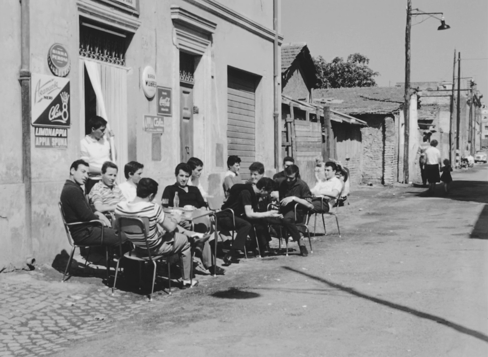 Le film débute dans un autre quartier populaire de l’est de Rome, Pigneto, au sud de la via Prenestina, déjà utilisé par Rossellini dans Rome, ville ouverte. Pasolini y tourne la scène du bar où se retrouvent les amis d’Accattone, via Fanfulla da Lodi.