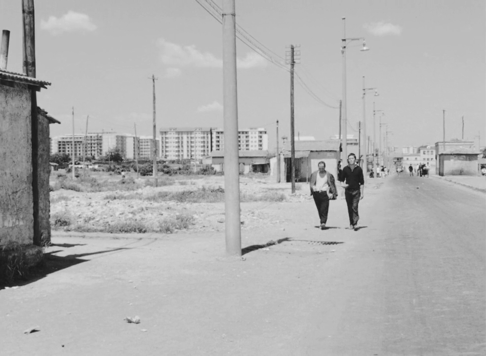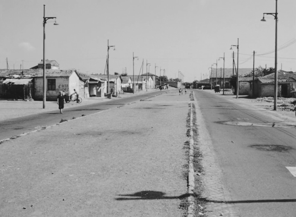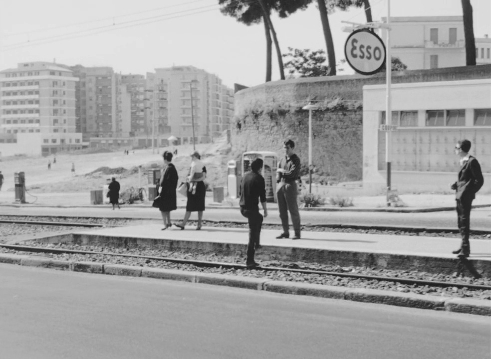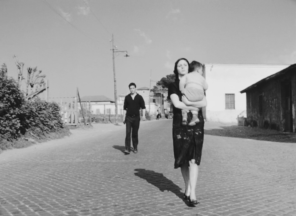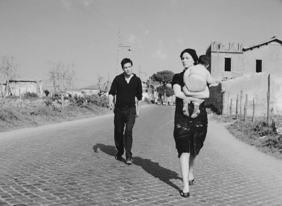 Un autre travelling montre Accattone avec Ascenza (Silvana Corsini), son ex-femme, portant leur bébé, remontant la Via Formia. La durée de la séquence accentue la désolation infinie de la banlieue.