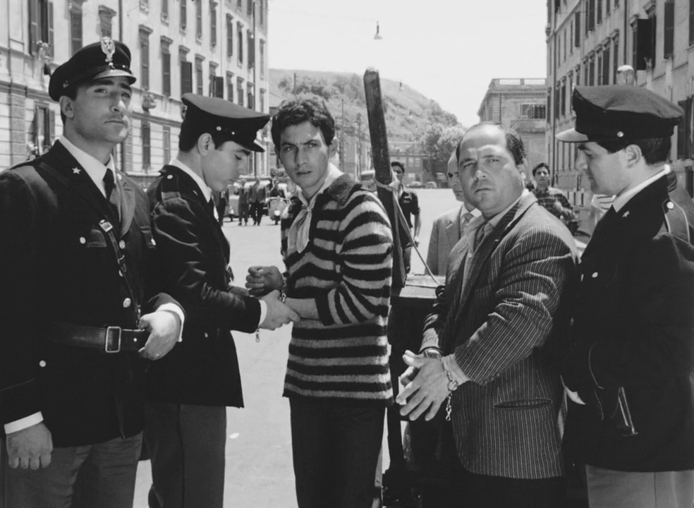 La jeune Maddalena (Silvana Corsini) se prostitue pour Accattone au bord d’une route désolée, près d’une usine. Sur un terrain vague, elle est violée et tabassée par des voyous qui en veulent à Accattone. Pasolini alterne l’agression avec des vues des logements alentours, créant un lien visuel entre violence gratuite et urbanisme déshumanisé.