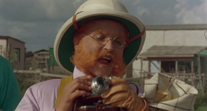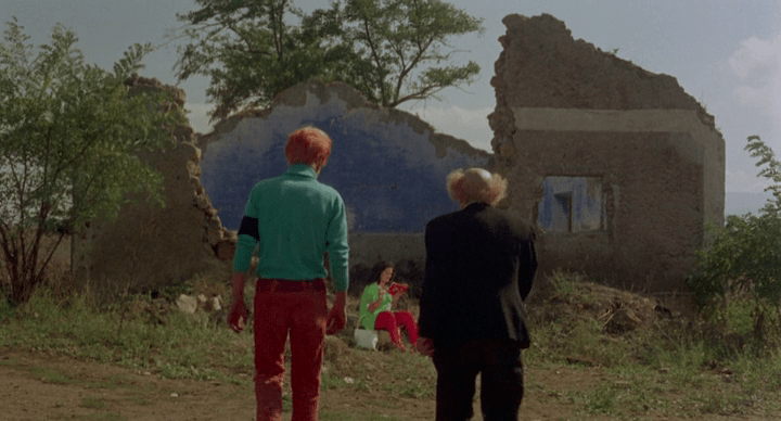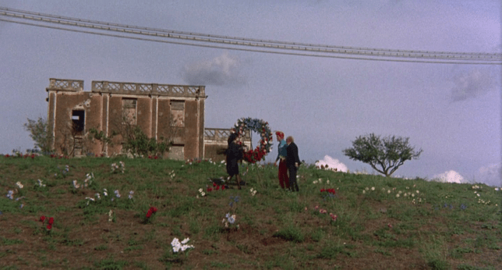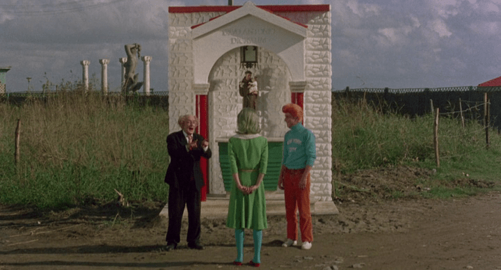 Le plan est saboté par un couple de touristes caricaturaux et peu respectueux des lieux (l’inimitable Laura Betti et Luigi Leoni, dans une parodie de Stan Laurel et Oliver Hardy vêtus en colons).