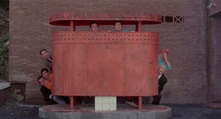 Comme dans Accattone et Mamma Roma – Pasolini pose sa caméra dans les borgate, ces banlieues romaines où la pauvreté est devenue si photogénique – au moins dans les films des néoréalistes italiennes. Mais contrairement à ses œuvres antérieures, où un regard âpre et réaliste exposait la misère humaine dans un noir et blanc contrasté, il opte ici pour un comic-strip grotesque aux couleurs appuyées.