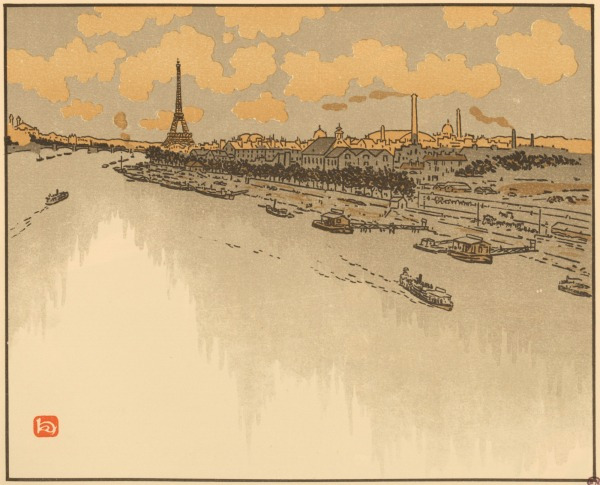 Le graveur français Henri Rivière réalise, entre 1888 et 1902, une série de 36 vues de la tour Eiffel, s’inspirant directement de la célèbre suite d’estampes japonaises de Hokusai intitulée Trente-six vues du mont Fuji.