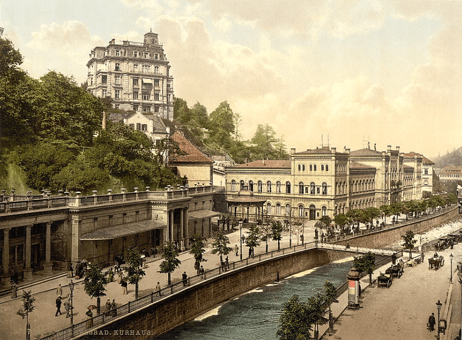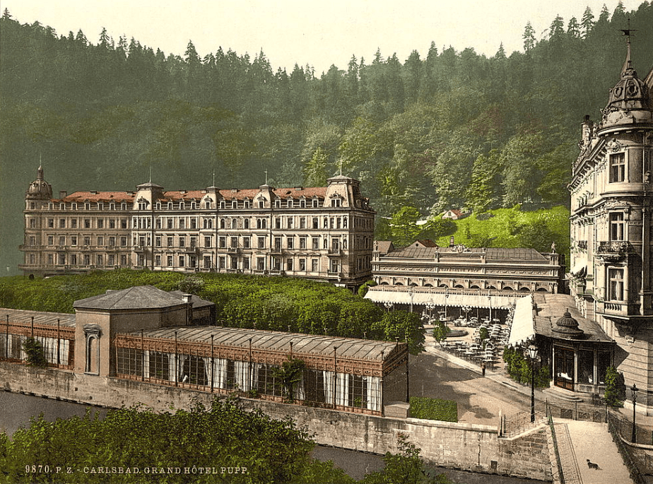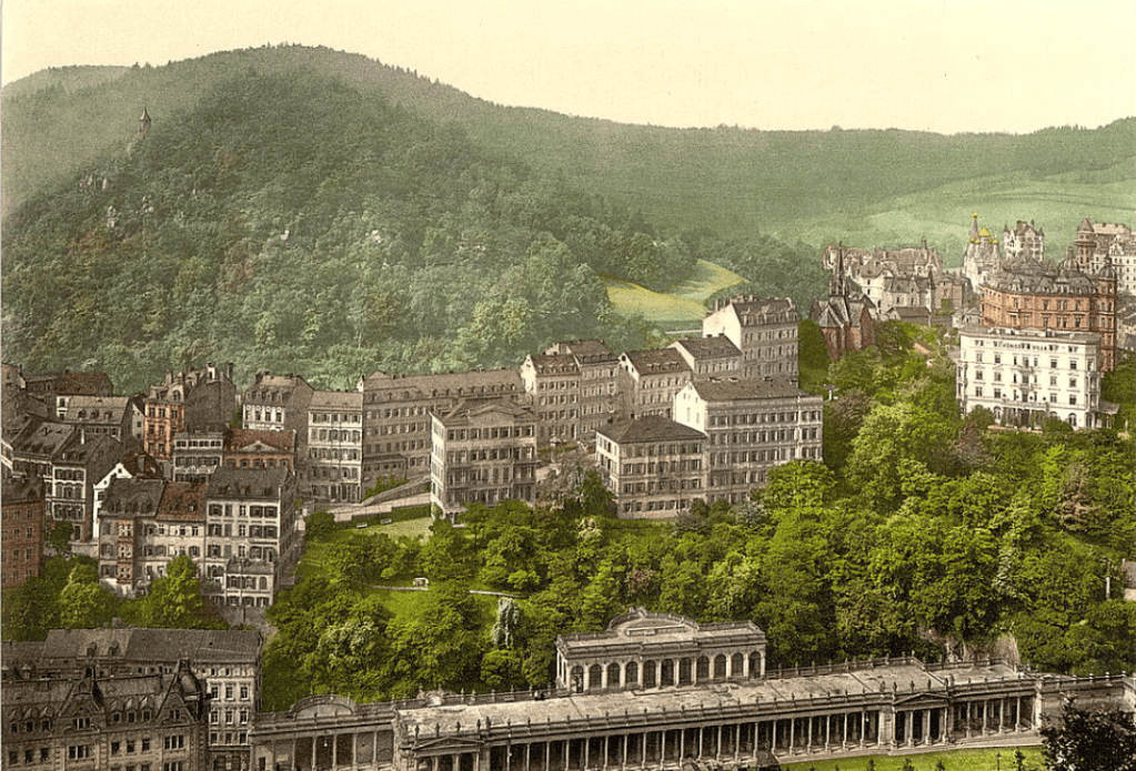 Le pays imaginaire de Zubrowka et la station thermale de Nebelsbad relèvent d’une géographie mentale plutôt que réaliste. Le film situe la ville « en contrebas des Sudentenwaltz alpines ». Pour créer cette station thermale fictive, Anderson s’inspire de deux villes mythiques d’Europe de l’Est : Karlovy Vary (Karlsbad en allemand – ci-dessus à gauche) et Mariánské Lázně (Marienbad en allemand – ci-dessus à droite), situées aujourd’hui à l’ouest de la Tchéquie, non loin de la frontière allemande.