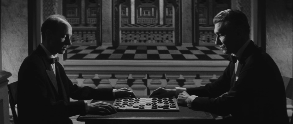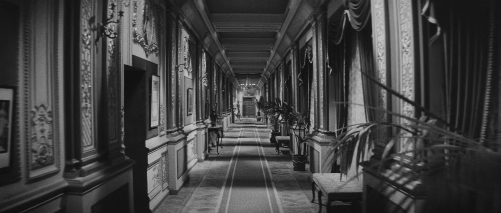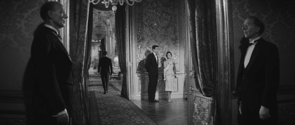 La phrase finale, évoquant un lieu « clair, rigoureux, ordonné », agit comme une ironie ultime. Comme chez Bergman (Le Silence, 1963) ou Kubrick (The Shining, 1980), l’hôtel devient un espace mental, un labyrinthe impénétrable. L’année dernière à Marienbad n’est pas un film à résoudre, mais un film à parcourir, où l’architecture et le montage remplace une narration dont le déroulement cesse d’être mesurable :