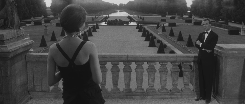 La terrasse disparaît lorsque Resnais filme la façade du château depuis le jardin dans sa globalité, pour réapparaître plus tard dans le film, mais cette fois très éloignée de la façade, reléguée à l’extrémité du jardin !
