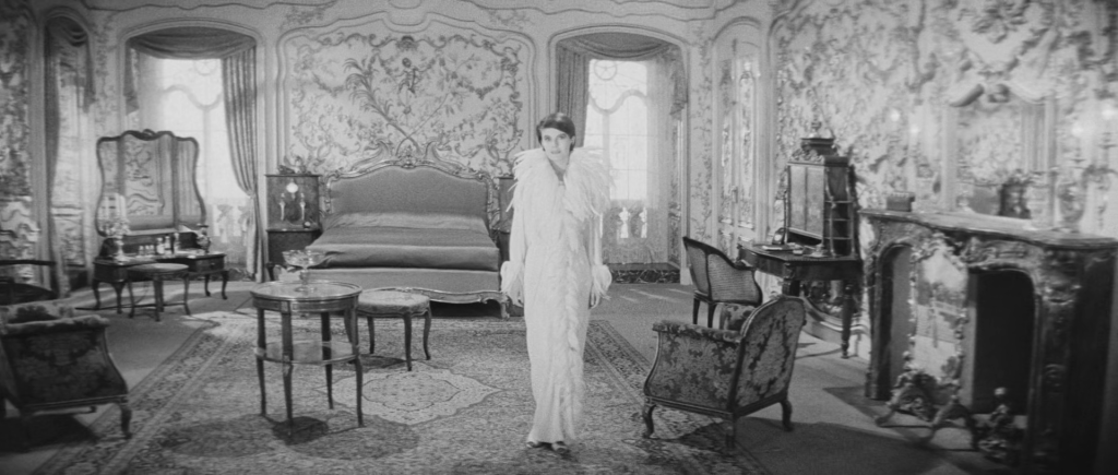 Les raccords spatiaux sont volontairement faussés : une conversation commencée dans une pièce se poursuit dans une autre, sans justification, tandis que la continuité sonore suggère une unité que l’image contredit. Une pièce change subitement de décor où un personnage sa robe. Le montage crée ainsi un espace mental plutôt qu’un espace réel.