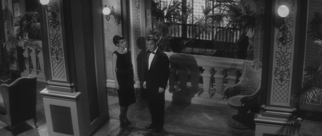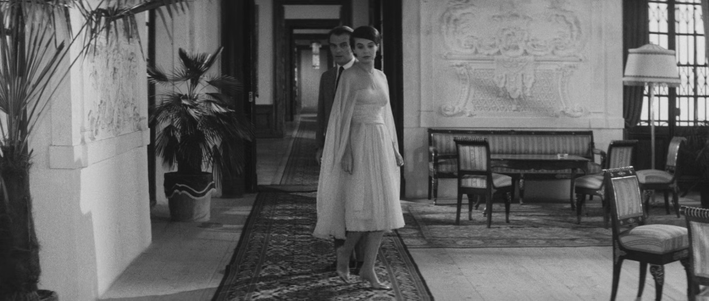 À première vue, l’hôtel semble parfaitement ordonné ; mais cet ordre apparent devient rapidement une machine à désorientation. Sur le plan de l’intrigue, l’indifférence de l’héroïne (la magnifique Delphine Seyrig) et l’insistance du jeune homme (Giorgio Albertazzi) s’étirent parfois en interminables languissements :