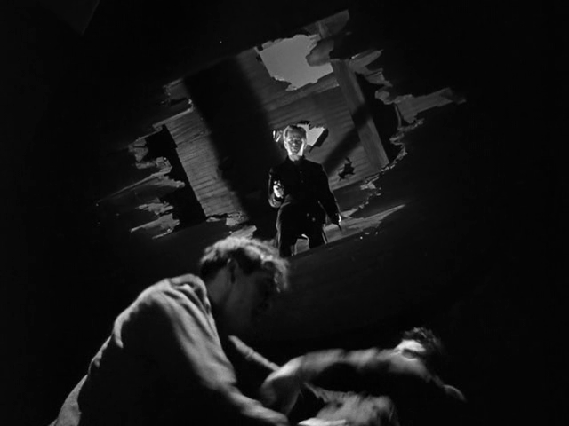 Les conspirateurs se cachent dans les souterrains d’une immense brasserie — après tout, nous sommes en Allemagne — ce qui permet à Tourneur de mettre en scène une remarquable séquence de suspense, aux cadrages expressionnistes sublimes.