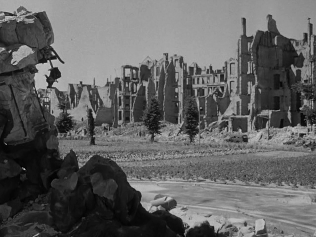 Mais Tourneur utilise surtout la « plus belle ville du monde » (selon le commentaire du film) pour créer un contraste fort avec ce que les protagonistes vont découvrir ensuite en Allemagne, où, dans les villes, près de 80 % des bâtiments ont été réduits en cendres.