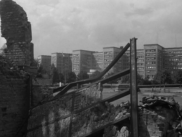 Néanmoins, Tourneur capte avec justesse l’atmosphère authentique des paysages dévastés en déplaçant ses personnages au milieu des gravats (d’abord à Francfort, puis – ci-dessus – à Berlin).