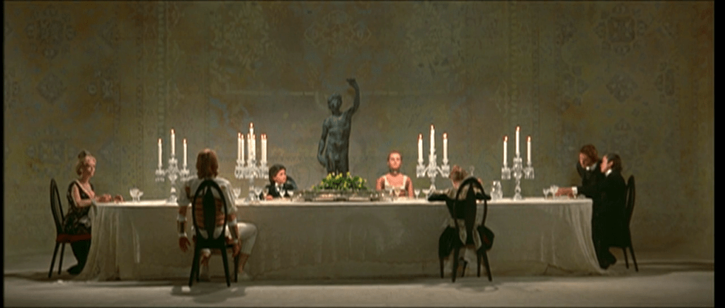 Cette approche oppose efficacement la beauté des lieux aux horreurs qui s’y déroulent et renvoie à une Europe décadente et dépravée.